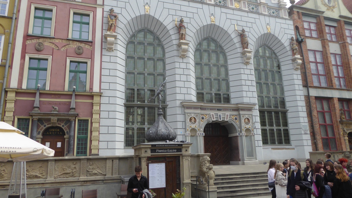 Hier eine Szenekneipe mit Fotos von bekannten amerikanischen Schauspielern. Polen ist auch ein Land mit Begeisterung und Leistung auf dem Gebiet des Films. Kneipen mit Schauspielern und deren Utensilien sind daher überall zu finden. Diese Brücke wird bei Schiffsdurchfahrt angehoben. Die Baltische Philharmonie. Ich buche eine Fahrt zur Westerplatte, Kostenpunkt 12 Euro. Die Fahrt geht auf der Motława Richtung Mündung, vorbei an Philharmonie dem Schiffsmuseum "Soldek" und vielen anderen Sehenswürdigkeiten. Das Museumsschiff "Soldek" Die Wasserstraßenbahn (so heißt der Ausflugsverkehr hier) fährt durch den Hafen, rechts und links Schiffe aus aller Welt. Vorbei geht es auch an diesem Kahn, der einen bekannten Namen trägt Das ist der alte Leuchtturm an der Mündung in die Ostsee. Wir fahren nur daran vorbei. Ausstieg ist an der Westerplatte. ![]() Im Hintergrund die Westerplatte. Zum Besuch der Westerplatte habe ich 1,5 h Zeit, dann holt uns der Kahn wieder ab und fährt zur Altstadt zurück. Vor dem einstiegen militärischen Gebiet ist ein Sandstrand und Küstenschutz aus Steinen vorgelagert. Die Westerplatte bewaldete, sandige, langgestreckte Halbinsel zwischen Ostsee und Hafenkanal. Sie diente bis zum Beschuss durch die Nazis Polen als Munitionslager. Von den Kasematten ist noch einiges zu sehen, betreten kann man sie nicht. Am 31. August kam über Funk die Aufforderung, am nächsten Tag um 4:45 Uhr Polen anzugreifen. In der Nacht zum 1. September fuhr die „Schleswig-Holstein“ in den Hafenkanal, um ein besseres Schussfeld zu haben. Unterstützt wurde die Aktion durch die SS-Heimwehr Danzig. Bis zum 7. September konnten die polnischen Verteidiger stand halten, dann kapitulierten sie. Vor den abziehenden polnischen Soldaten salutierten die deutschen Offiziere. Die Polen hatten angesichts des schweren Beschusses relativ geringe Verluste, 15 Gefallene und 50 Verwundete. Das gesamte Gebiet ist mit Aufklärungstafeln in Englisch und Polnisch bestellt. Und auch Gastronomie fehlt nicht. Es ist nicht nur der Zweite Weltkrieg, an den man erinnert wird, nein auch der Ukraine-Feldzug (vermeidet das verbotene Wort) ist allgegenwärtig. Hier Flüchtlinge mit ihren Habseligkeiten. Die sieht man in ganz Polen auch besonders hier in Danzig. Und es wird massive Hilfe geboten, Lager, Läden und Jobangebote. ![]() Es geht zurück und ich besuche das andere Ufer der Motława. Rechts das Schiffsmuseum links einige Ausstellungsstücke. Hier links eine Schiffsmaschine. Ein polnisches Erkundungs-Uboot. |