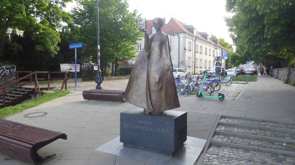 den Franzosen Pierre Curie heiratete. 1903 erhielt sie den Physik-Nobelpreis für die Entdeckung der Radioaktivität, 1911 den für Chemie für die Entdeckung der Elemente Radium und Polonium sowie für die Isolierung des Radiums. Sie war die erste und einzige Wissenschaftlerin, die den Nobelpreis zweimal erhielt. In der Nähe des Denkmals ist auch ihr Geburtshaus. |