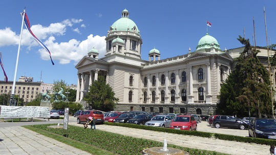 ![]() Hunger!! Ein kleines Bistro in der Nähe des Parlaments hat nicht nur Sushi sondern auch ein leckeres Frühstück mit Spiegelei, Schinken, gebratener Wurst un Käse. Mit Kaffe für umgerechnet 4 Euro. Trinkgeld einbegriffen. Der Kellner kann wie viele hier Englisch und erklärt mir den Weg zur Festung. Vor dem Parlament eine Plakatwand mit Fotos von (angeblich??) kosovarischen Separatisten getöteter Serben. Es fehlt auch nicht der Hinweis auf die NATO-Aggression 1999, der auch Menschen ein paar Gebäude in Belgrad durch Bomben und Lenkflugkörper zum Opfer fielen. So sieht das damals angegriffene Gebäude des Rundfunks immer noch aus, 17 Tote Techniker. |