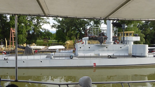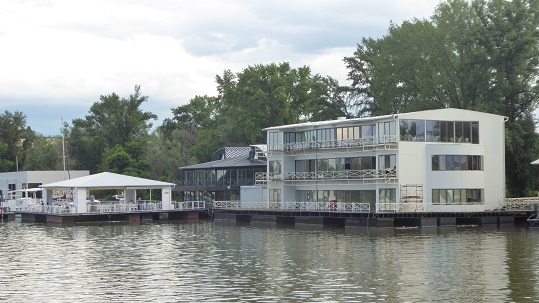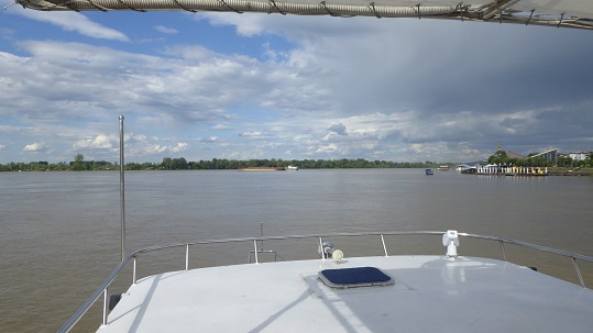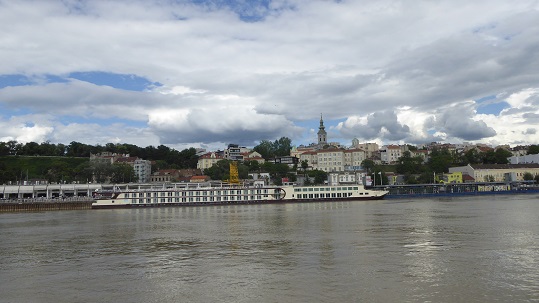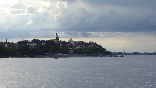 Wir fahren um die große Kriegsinsel, die heute Vogelparadies ist, herum und gelangen an das Ufer von Zemun, im Hintergrund ein Aussichtsturm am Rande von Zemun. Zemun gehört zum neuen Teil von Belgrad und war von den Türken nicht besetzt. | |||