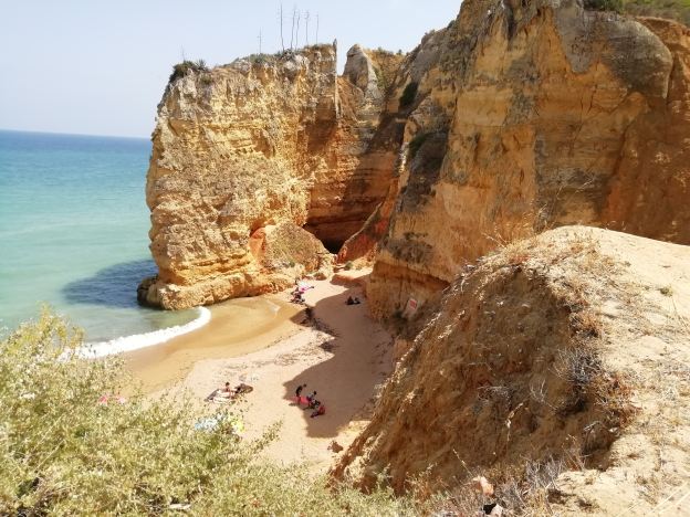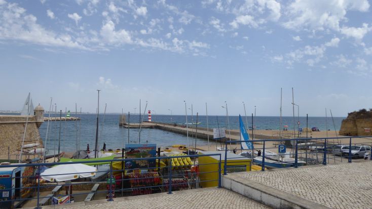 Von Barranco do Velho nach Lagos sind es etwa 80 km. Lagos erscheint mir als günstiges Zwischenziel, denn die Stadt ist hübsch und gut zu Fuß zu erschließen. Lagos liegt in der Algarve im Süden Portugals. Sie ist für ihre Altstadt mit Stadtmauer, ihre Klippen und ihre Atlantikstrände bekannt. Die nahegelegenen Klippen der Ponta da Piedade bieten einen Panoramablick auf die Landzunge und den dortigen Leuchtturm. Die im 18. Jahrhundert erbaute prachtvolle Kirche Igreja de Santo António befindet sich gegenüber dem Castelo dos Governadores, einer Festung mit barocker Fassade und Wachtürmen. |