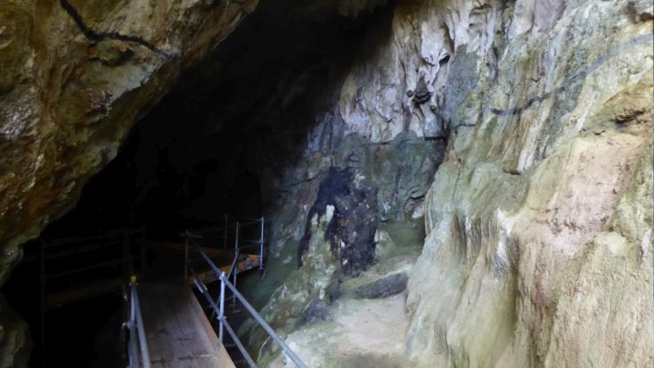 Am nächsten Morgen machen ich mich auf ein kleine Rundreise. Erstes Ziel ist die Höhle von Santimamine. Dazu ist eine kleine Wanderung nötig. Leider seit 2006 geschlossen und so kann ich die Steinzeitlichen Höhlenmalereien nur ahnen. Dieses Bild hier beschreibt zwar das Leben der Höhlenbewohner, stammt aber nicht von ihnen. Übrigens ist die Kasse zur Höhle noch besetzt! |