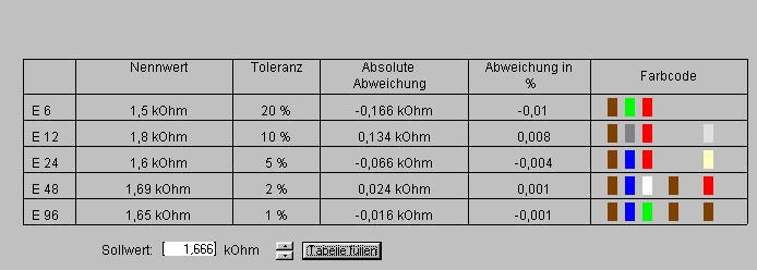 - Suche nach Widerstandswerten in den E-Reihen
