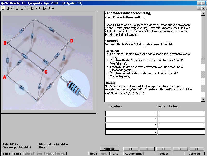 spezifischen Algorithmen der Elektrotechnik (Parallelschaltung, Bool'sche Algebra automatische Erkennung der Winkelangabe usw.,)